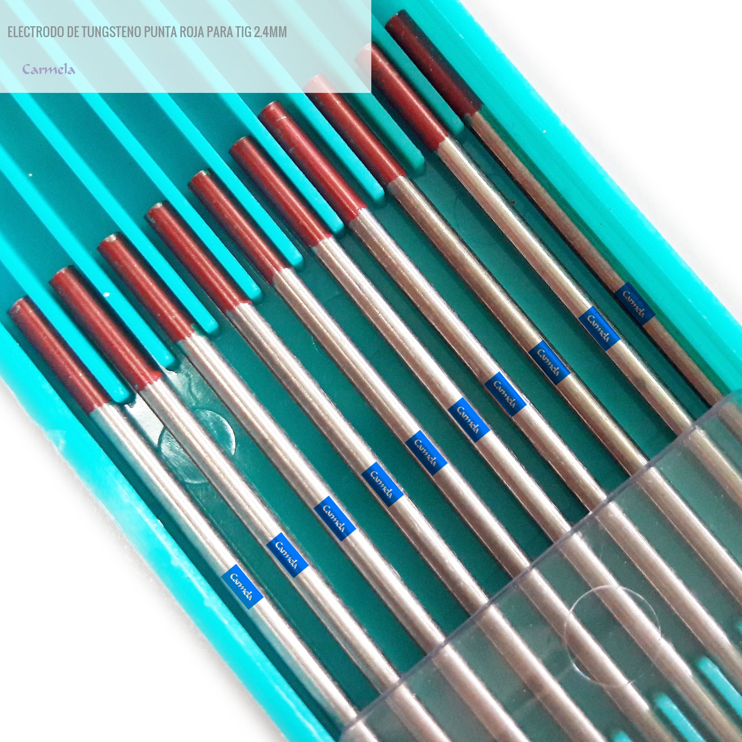 Electrodo de tungsteno punta roja para utilizar con soldadora TIG. 2.4mm de diámetro.