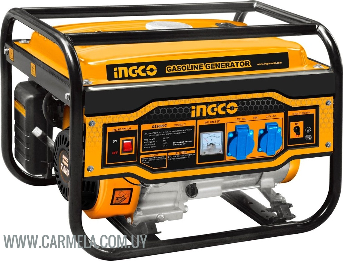 Generador a nafta con motor de 4T de la línea INGCO. Con capacidad para entregar hasta 2800 watts de potencia.