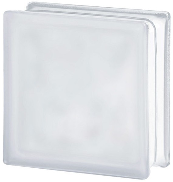 Nuevo y moderno ladrillo de vidrio con terminación esmerilada. Permite pasar la luz pero no distinguir las formas a través de su textura.